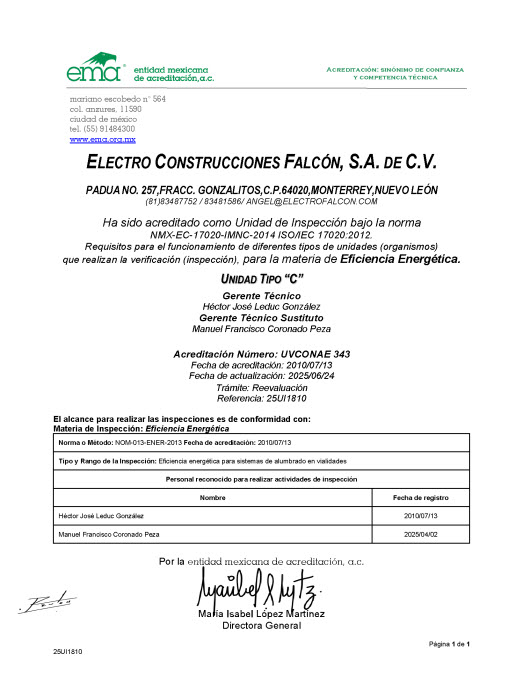 Mexican Official Standard NOM-013-ENER-2013 ENERGY EFFICIENCY FOR ROADS lighting systems SHEET 2.